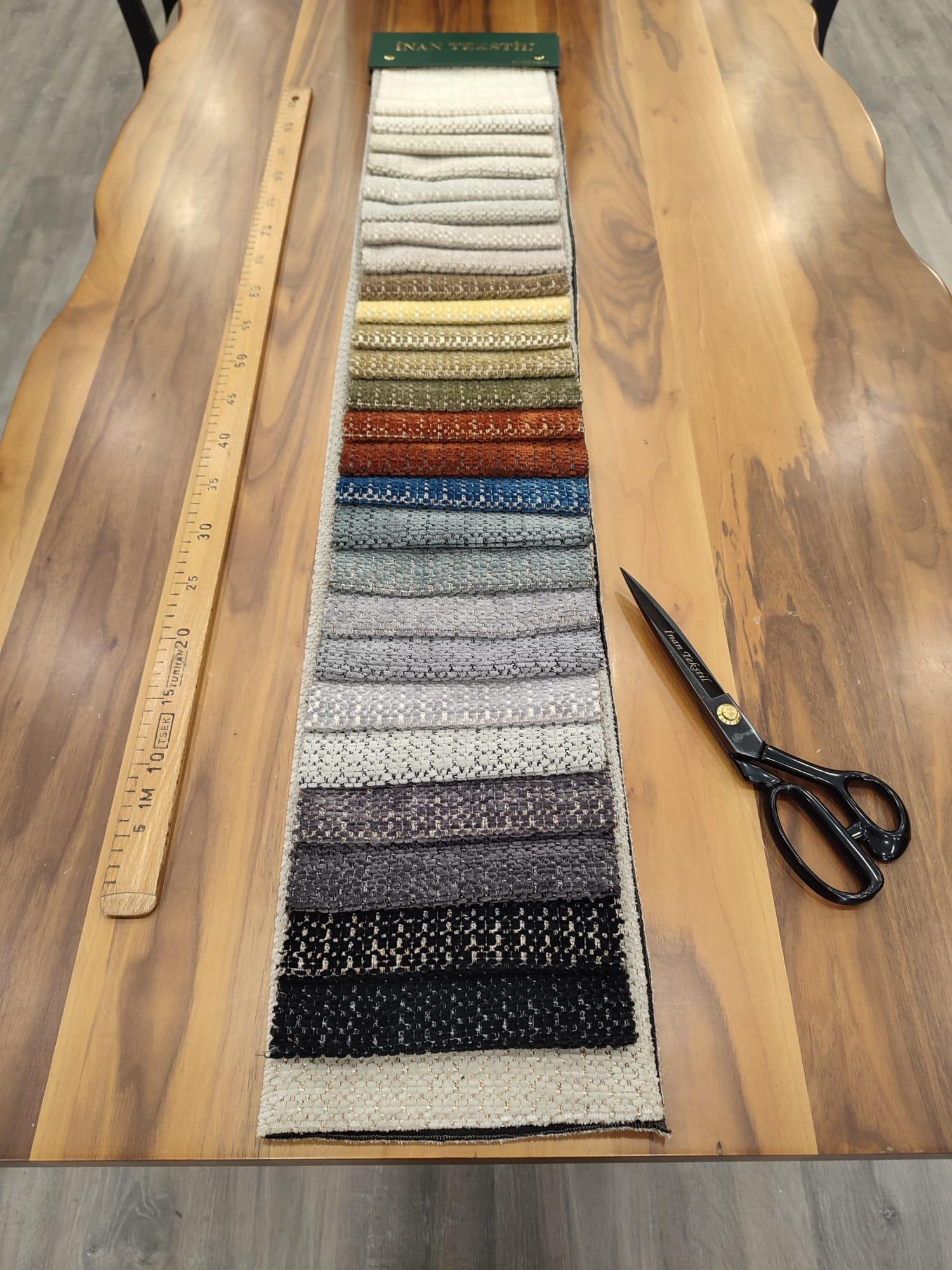 Döşemelik kumaş portföyümüzde kadife, keten, saten, şönil, goblen, kanvas, pamuklu, bukle ve kapitone gibi zengin çeşitler özenle yer almaktadır.